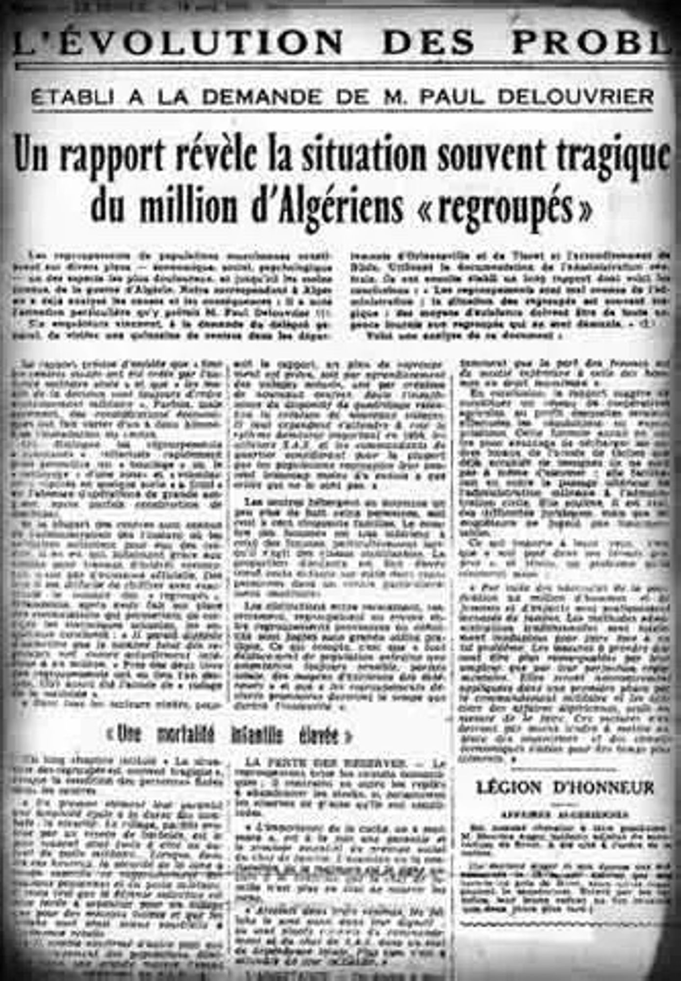 Envoyé en Algérie en septembre 1958, il rédigea un rapport sur les camps de regroupement où étaient enfermées les populations musulmanes, dont les fuites dans Le Monde et France Observateur auront un grand retentissement.