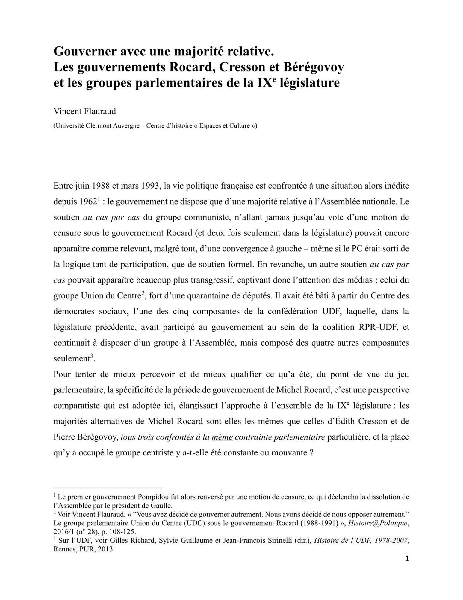 Gouverner avec une majorité relative. Les gouvernements Rocard, Cresson et Bérégovoy et les groupes parlementaires de la IXe législature Vincent Flauraud, Juin 2023 Gouverner avec une majorité relative (564.7 Ko)